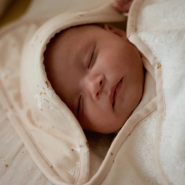 Avvolgi il tuo piccolo in calore e morbidezza con questa mantellina da bagno. Realizzata in cotone biologico al 100% per una sensazione meravigliosamente morbida e accogliente. Il cappuccio offre ulteriore comfort e sicurezza dopo il bagno. L'asciugamano ha un bellissimo colore e un cappuccio con una graziosa stampa per un tocco di fascino in più.