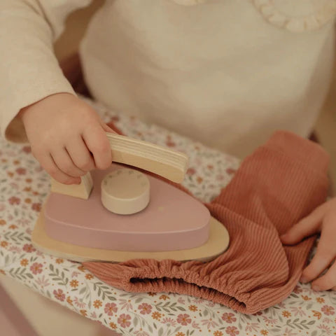 Stira come i grandi! Con questo splendido asse da stiro in legno e il ferro da stiro abbinato, i più piccoli potranno stirare ordinatamente i vestiti delle loro bambole o dei loro peluche. L'asse è pieghevole, quindi è facile da riporre. Un'aggiunta perfetta al gioco di ruolo e un ottimo modo per scoprire le faccende domestiche giocando!