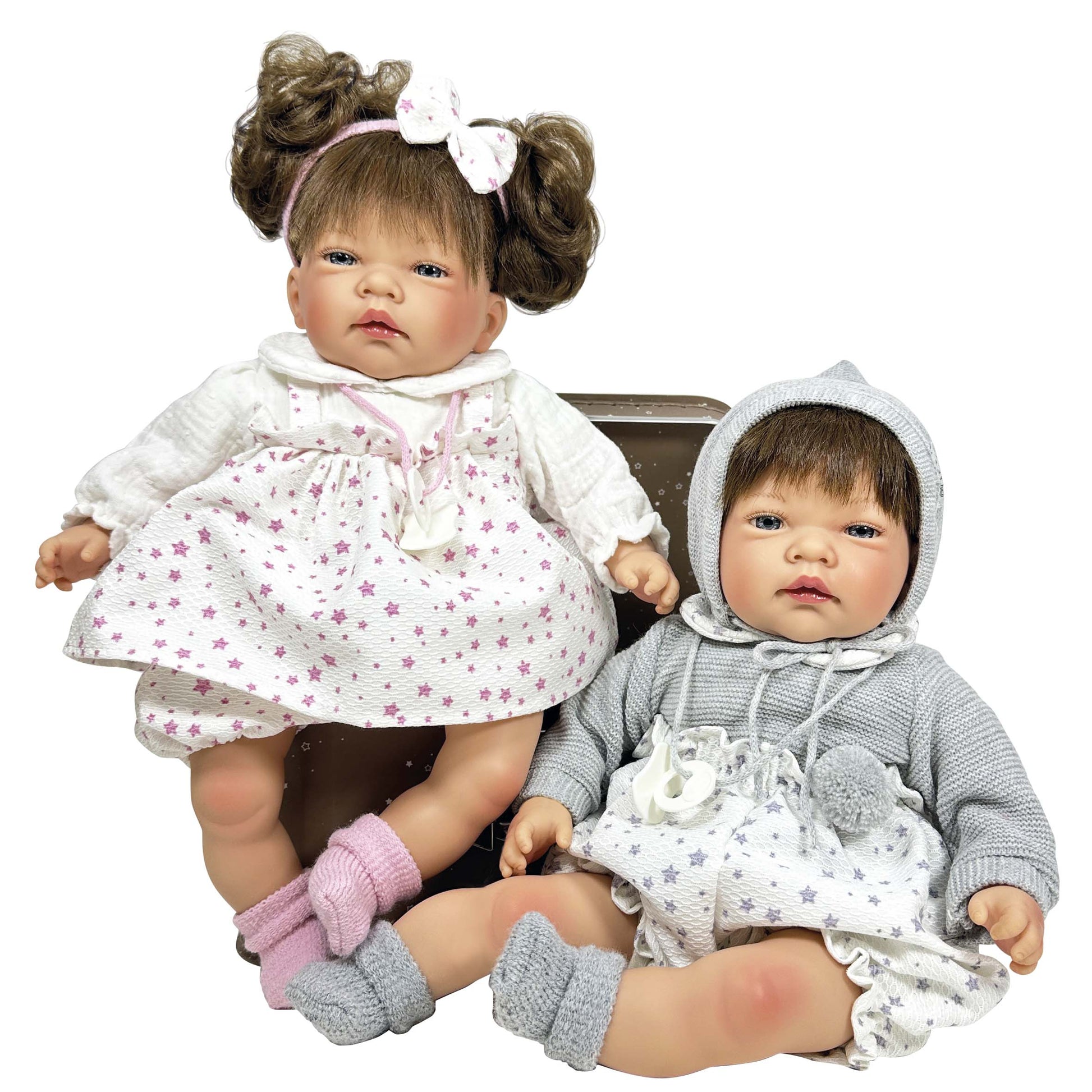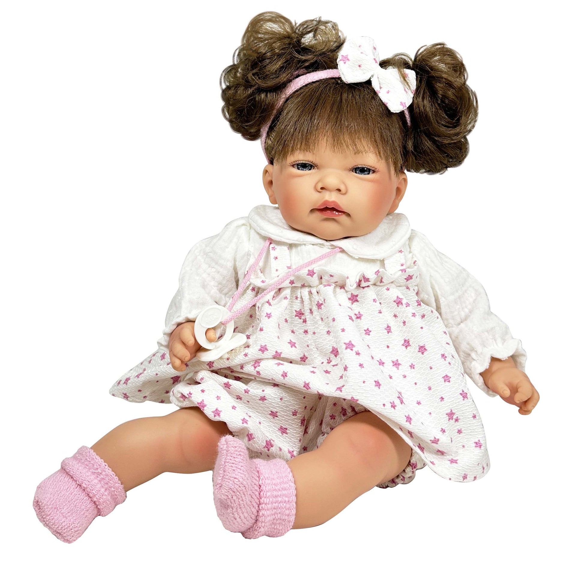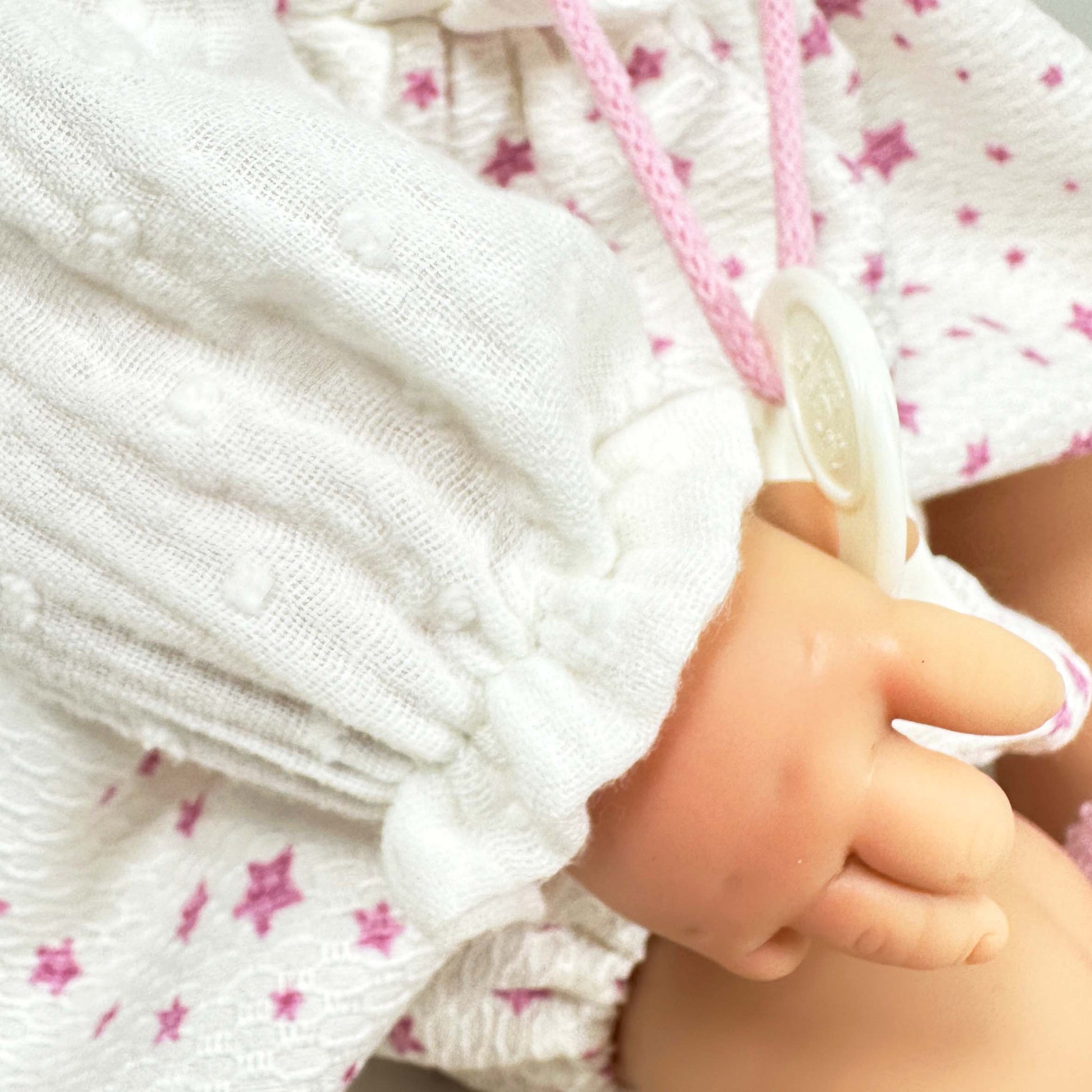 CELIA è una bambola che misura 45 cm. Ha arti in vinile e un corpo morbido in tessuto ipoallergenico, accompagnata da tessuti moderni come la mussola per i suoi vestiti e le cuciture per i suoi stivaletti, con una bellissima fascia abbinata.
