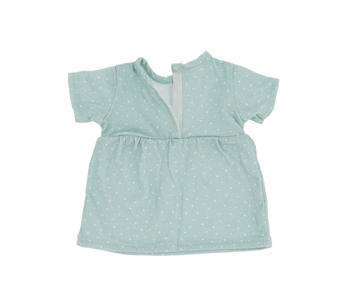 Questa bambola è vestita con gli abitini dell'esclusiva collezione Monnëka: un vestito, una braghetta e una fascia per i capelli.