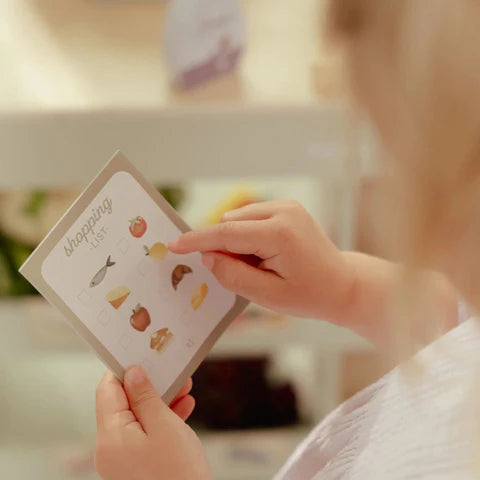 Con questo carrello della spesa giocattolo in legno, puoi portare tutto ciò di cui hai bisogno in casa. Grazie all'ampio spazio, tutta la spesa trova posto, anche se la lista è lunga. La clip in legno assicura che la lista della spesa rimanga al suo posto, così non dimentichi nulla. Il set include vari prodotti alimentari e una borsa per la spesa, così puoi iniziare subito. Il carrello della spesa è decorato con una divertente illustrazione sulla parte anteriore, rendendo il gioco ancora più divertente. Vuoi un'esperienza di shopping senza pari? Combina il carrello della spesa con la bancarella del mercato e goditi uno shopping senza fine!