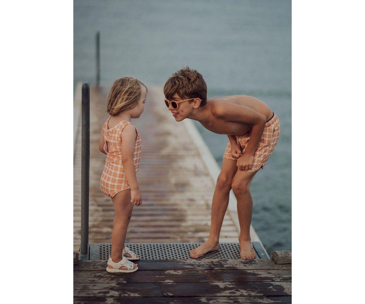 Montatura unisex flessibile, a base biologica, con lenti di qualità polarizzate, adatte a proteggere gli occhi delicati dei bambini.