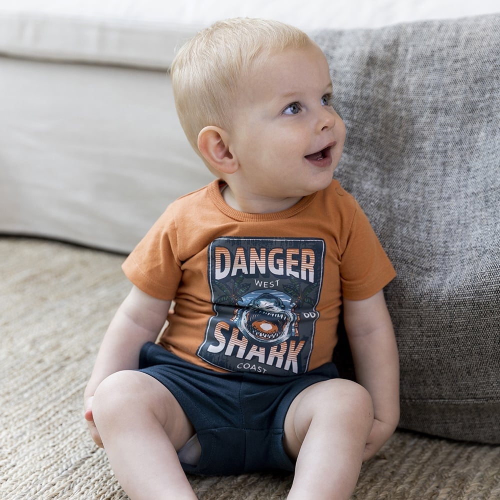 Pantaloncini color petrolio in cotone elasticizzato con bordino bianco e cordoncini in vita.