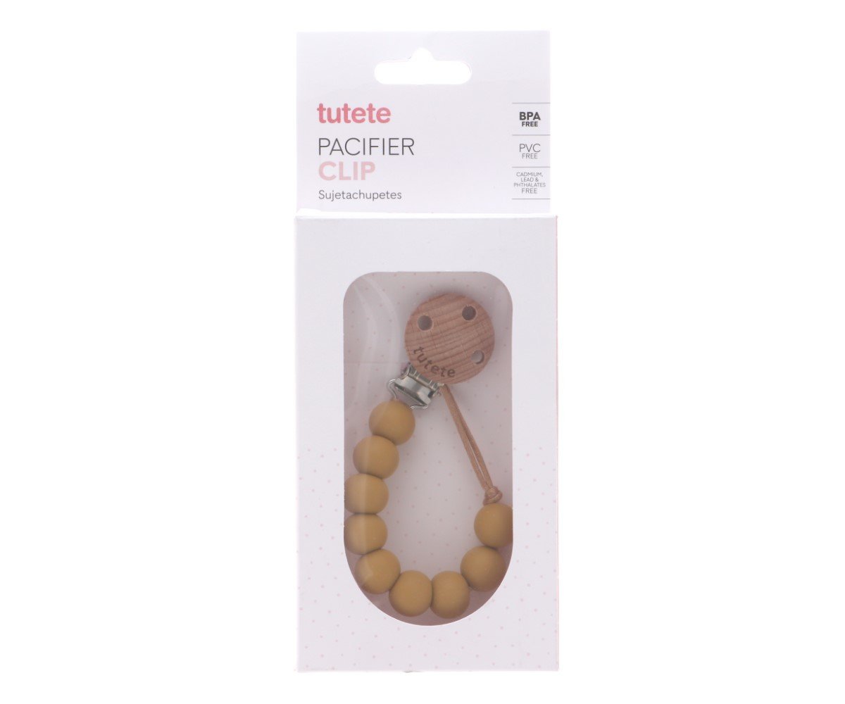 Portasucchietto in 100% silicone alimentare antibatterico morbido e flessibile per tenere il ciuccio a portata di mano in sicurezza.