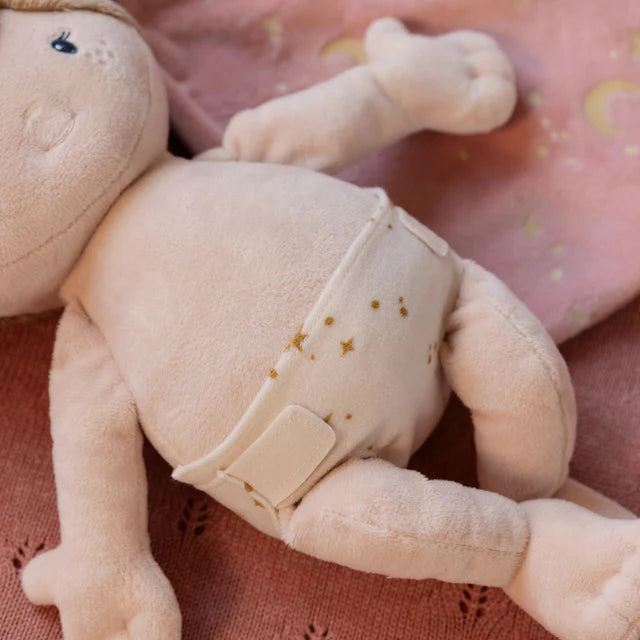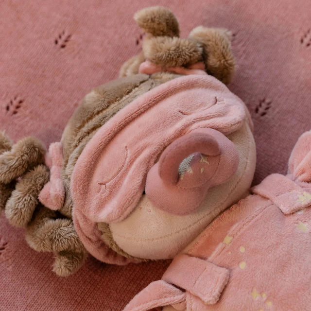 Ecco Rosa, la morbida amica del sonno per il tuo piccolo. Con il suo grazioso ciuccio, la mascherina per dormire e il comodo sacco nanna con luna e stelle che si illuminano al buio, l'ora della nanna diventa un momento magico. La sua tutina e il suo pannolino possono essere indossati e tolti per momenti di gioco e coccole extra.