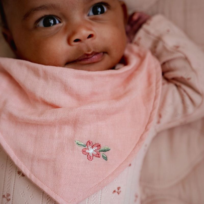 Mantieni l'abbigliamento del tuo piccolo asciutto e alla moda durante la dentizione con un bavaglino bandana. Il tessuto in mussola, realizzato in 100% cotone biologico, è morbido sulla pelle e assorbe l'umidità, così il tuo bambino rimane asciutto e contento. I due bavaglini di questo set sono foderati e dotati di due bottoni automatici, che li rendono facili da regolare e adattare alla crescita del tuo bambino. Il bavaglino in tinta unita con motivo a fiori rosa dona un senso di sicurezza e tranquillità e si abbina a qualsiasi outfit.