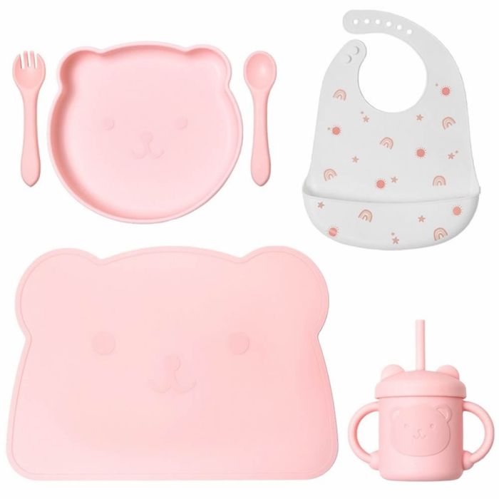 Pratico e comodo set pappa per neonati realizzato in silicone, adatto sia a microonde che a lavastoviglie. Il grazioso set è composto da tovaglietta, bavaglia, piatto, set di posate e bicchiere con tappo e cannuccia. E' pensato per accompagnare il bambino durante le fasi di svezzamento. realizzato con materiali sicuri, è privo di bpa, garantendo l'assenza di sostanze nocive per la salute del bambino.
