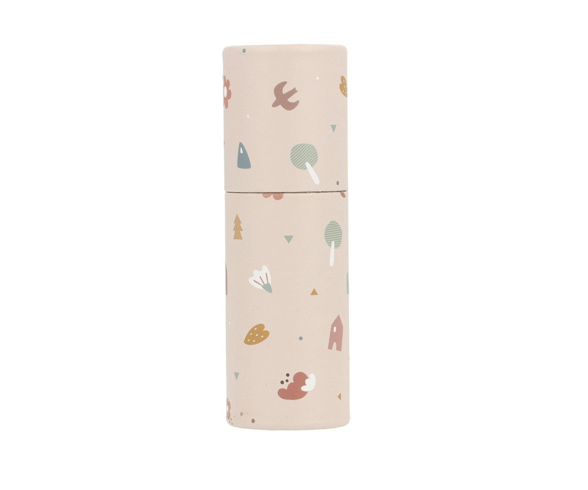 Tubo di cartone decorato con i disegni della collezione Geometric Nature Tutete Scuola 2025.